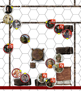 Duzen Iken, but I forget to use him and moved him to Stinecrice, where I forgot about him again. Then he was going to feature in the orcs in Session 17, but got busy and forgot again. So I decided to have a couple of rounds of personal scale combat at the start of the battle so Murzush could menace people properly. This maybe wasn't the best idea I've ever had, as it was already getting late and personal combat can be slow, but I figured I'd give it a try.