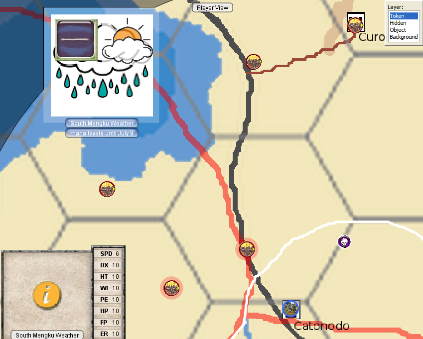 My assumption was that the PCs would defeat the northern orcs at the Ravenrock bridge, and then get caught in a siege against superior forces at Grimstut. Looking for an out, they would use the flying boat and the covert action team (which at this point was roughly equal to an orc company by themselves, but with much better leadership) to raise Resistance forces in Mortilbaser, Buctun, and Rundbord, and cut the orc supply lines and starve them out. The orcs would counter and it would all be very exciting. Of course, the PCs didn't do that.
